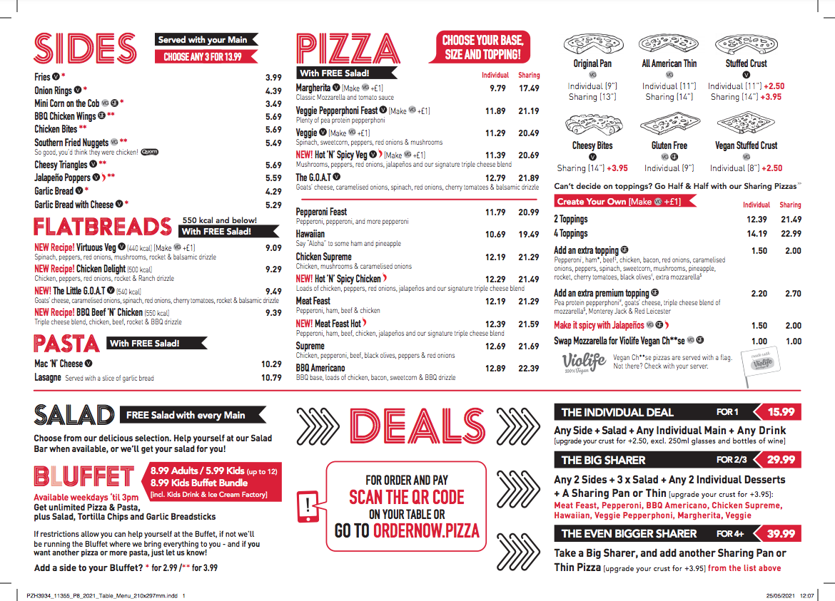 “ Had a meal here with my girlfriend during the buffet time slot. I had the buffet option, and my girlfriend had a personal pizza, and shared garlic bread as a side, and both of us used the salad bar. Our server was Hannah / Anna (didn't quite hear properly) who was absolutely fantastic! We were greeted within seconds of walking in and taken to a table, was given an explanation of the changes to the menu and if we'd been there before. During our time spent here, our wonderful server was very attentive to our table even though the restaurant was busy. Always smiling, a happy to help attitude, and very polite. The food was excellent! Nice and hot, the garlic bread was perfect, and the salad bar was full and fresh! To no fault of their own, the restaurant was quite loud and cramped due to the amount of people there, which made having a conversation difficult but we understand that nothing can really be done about that. We will be returning in the future and thank the restaurant for a wonderful meal. Thank you. ”